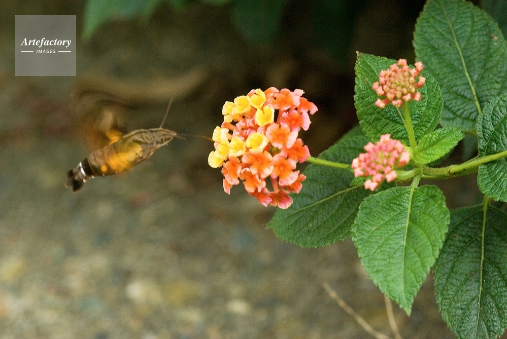 | キャプション | スズメガ科 ランタナの花の蜜を吸う 成虫で越冬をする。成虫は昼間に活動し一点に飛びながら静止ホバリングをして長い口をのばして花の蜜を吸う 蛾とは思えない敏捷な動き幼虫の食性はヘクソカズラを食べる | 制限事項 | ||