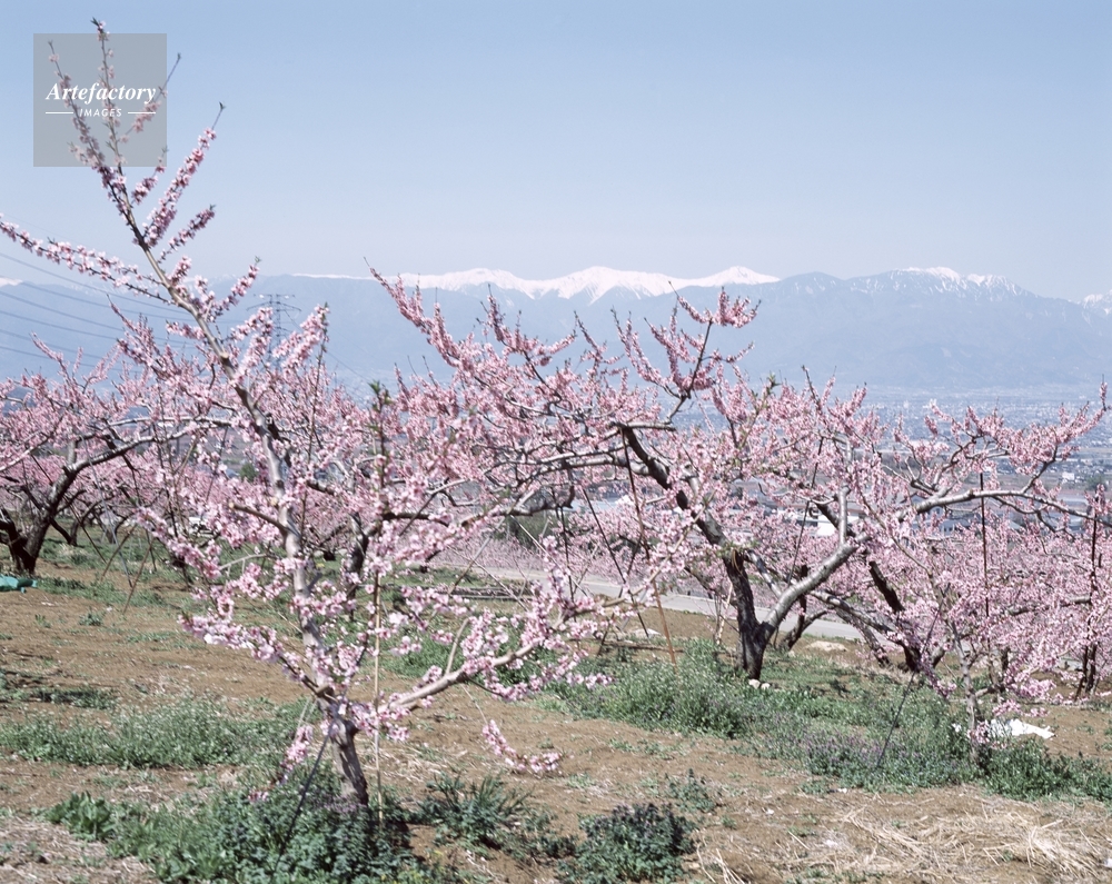 | 作品タイトル | 満開の桃の花 [後方]白根三山 | モデルリリース | なし | |