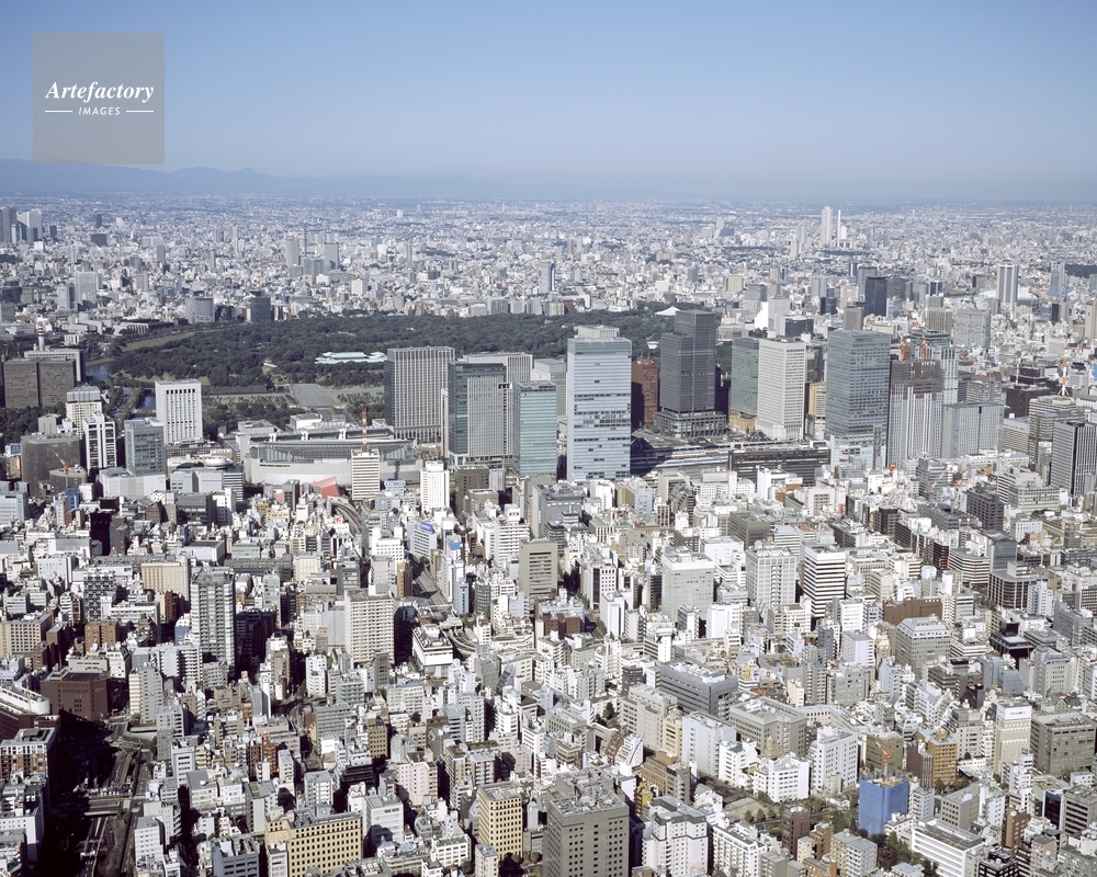 | 作品タイトル | 八丁堀上空より望む東京駅 皇居 | モデルリリース | なし | |