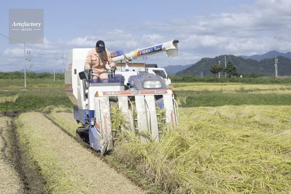 | 作品タイトル | 八海山をバックにコシヒカリの稲刈り | モデルリリース | なし | |
