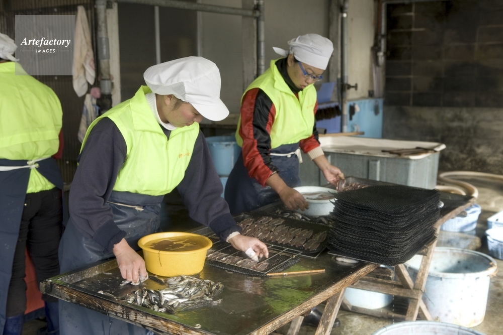 | 作品タイトル | 水産加工・イワシの味醂干し作り(イワシを開く) | モデルリリース | なし | |