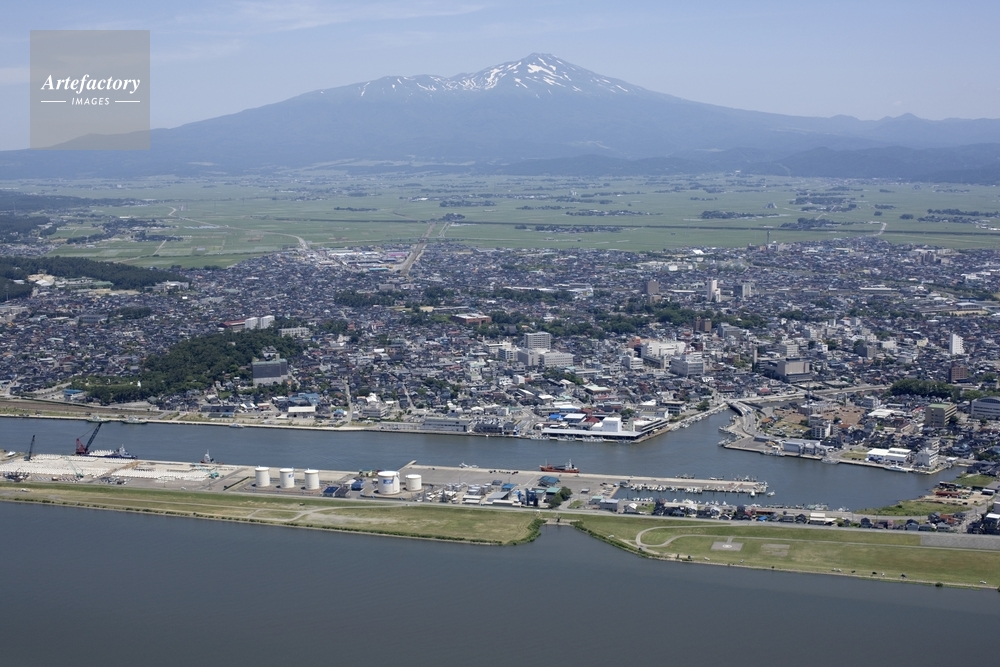 | 作品タイトル | 酒田港と市街、庄内平野、鳥海山 | モデルリリース | なし | |