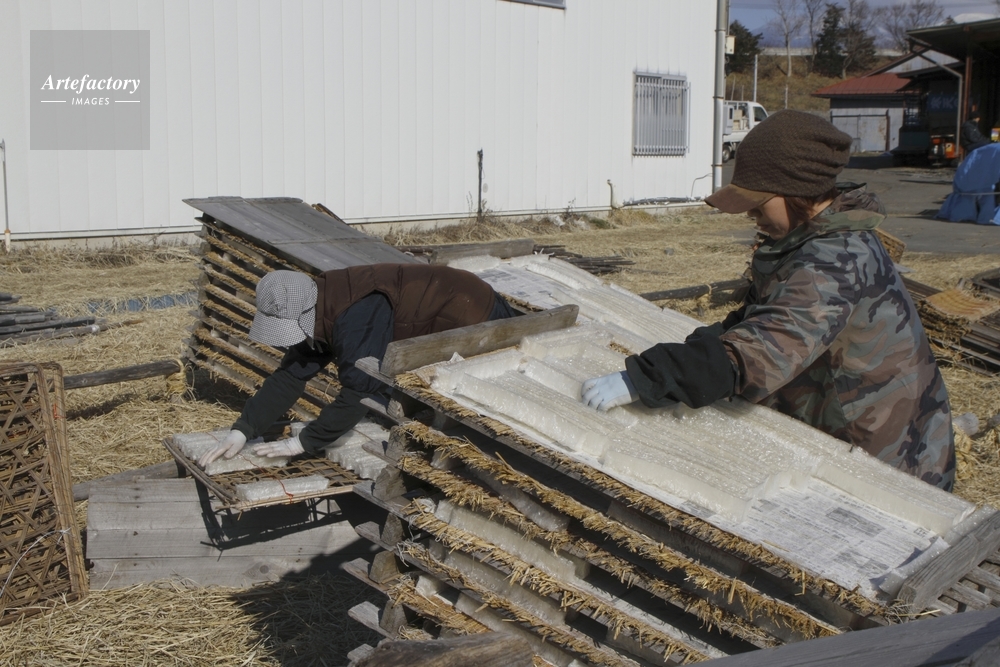 | 作品タイトル | 寒天 天日干し後すかごに並べ替える 冬の水田 | モデルリリース | なし | |