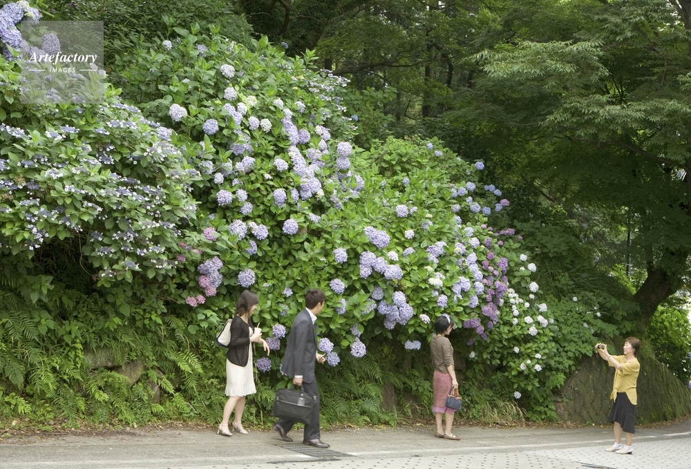 | 作品タイトル | アジサイの前で記念写真 | モデルリリース | なし | |