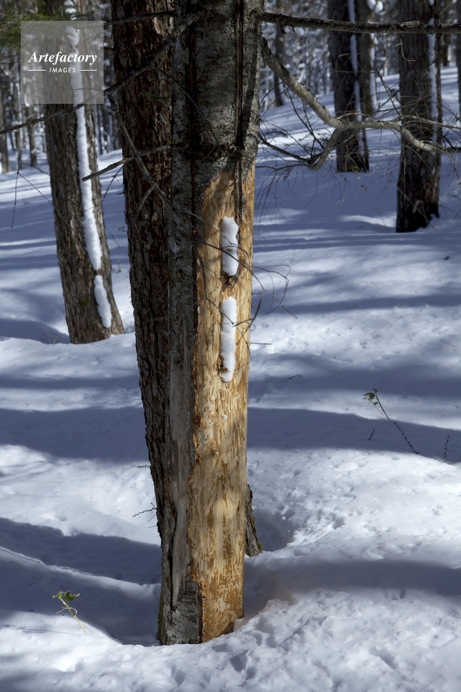 | 作品タイトル | 蓼科高原 鹿の害で皮が剥がれた木 | モデルリリース | なし | |