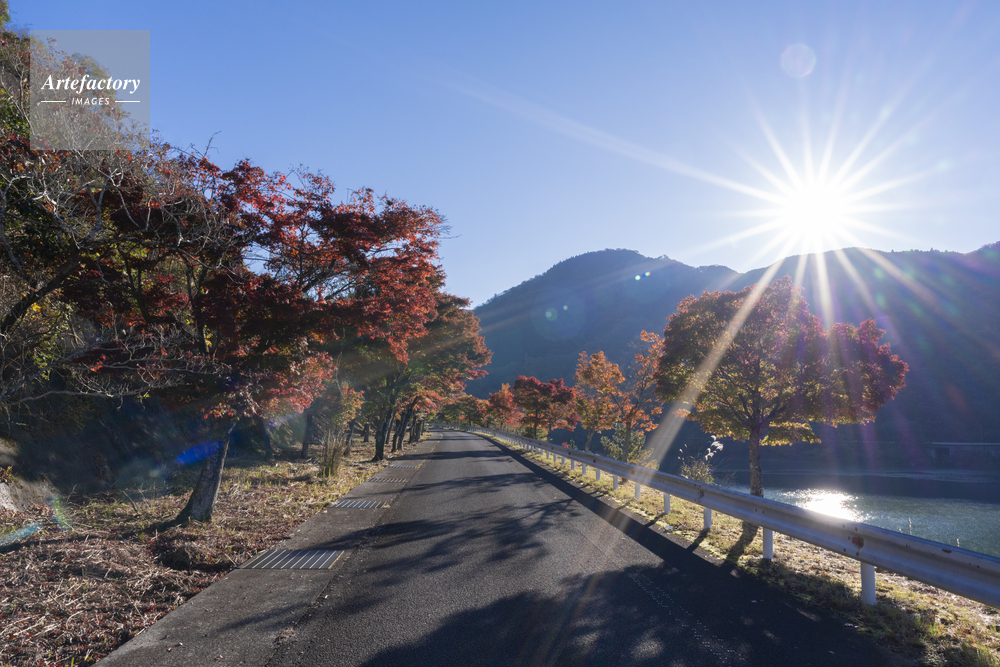 | 作品タイトル | モミジの紅葉と道と太陽 | モデルリリース | なし | |