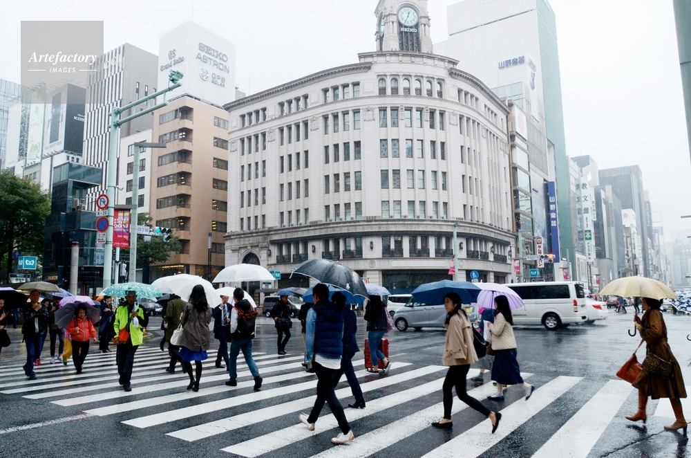 | キャプション | 傘をさして行かう人々、東京銀座4丁目交差点(東京都中央区)。 | 制限事項 | ||
