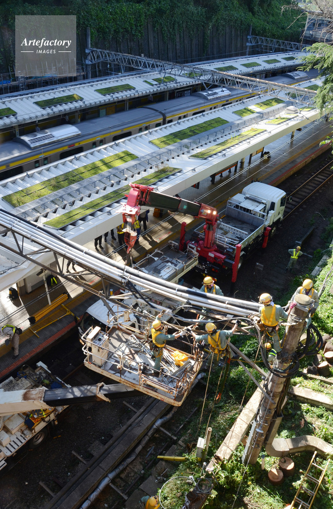 日本,台風被害,台風24号,復旧作業,倒木,電線工事,鉄道,中央線快速,四ッ谷駅,電車,駅,JR東日本,2018年10月1日,秋,屋外,東京,四ッ谷,新宿区