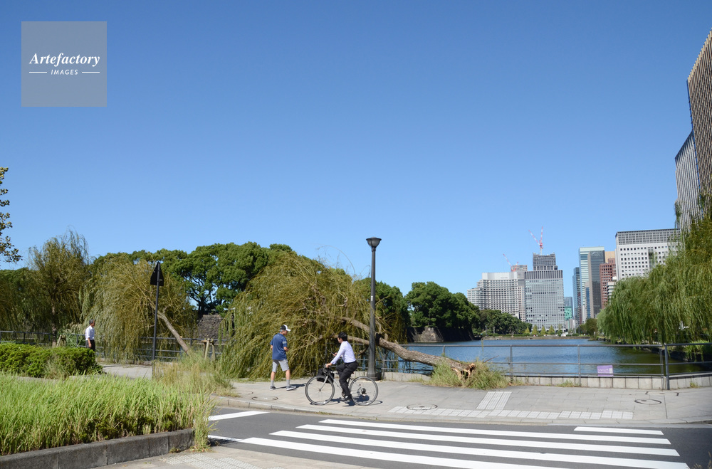 | キャプション | 台風24号の強風でお堀(日比谷濠)脇の柳の木が倒れた。不安げに見る人。日比谷交差点近く。 | 制限事項 | ||