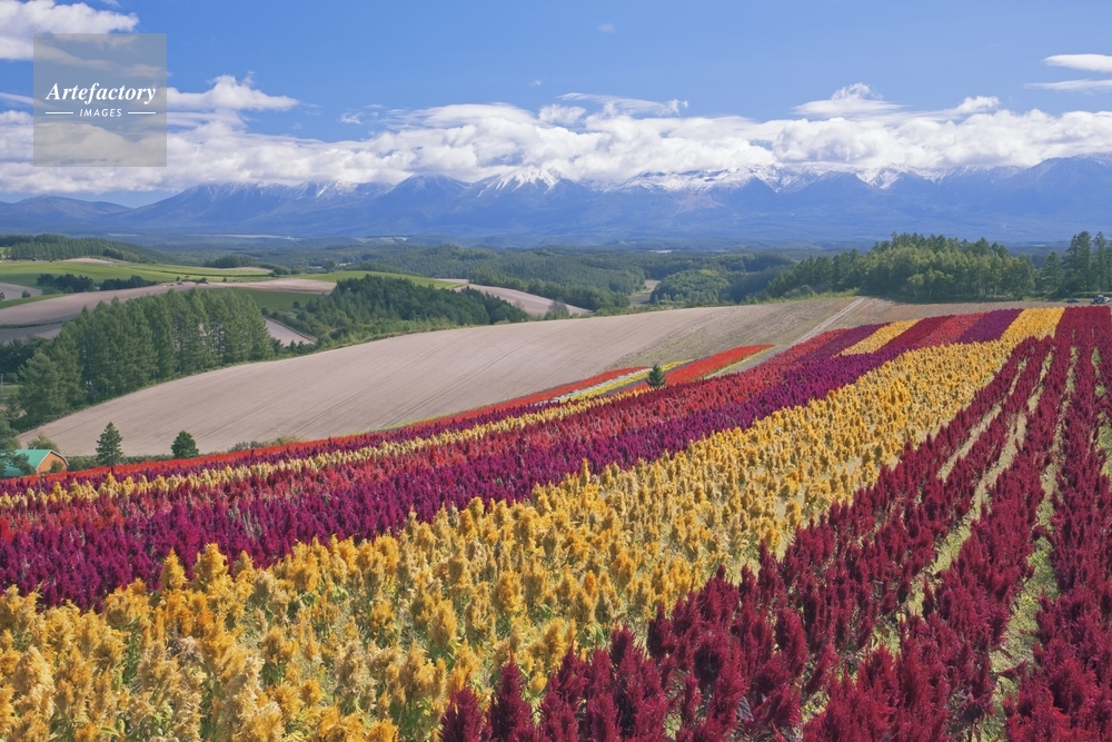 | 作品タイトル | ケイトウ咲く四季彩の丘より十勝連峰 | モデルリリース | なし | |