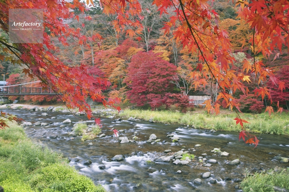 | 作品タイトル | 紅葉の箒川と紅の吊橋 塩原温泉 | モデルリリース | なし | |