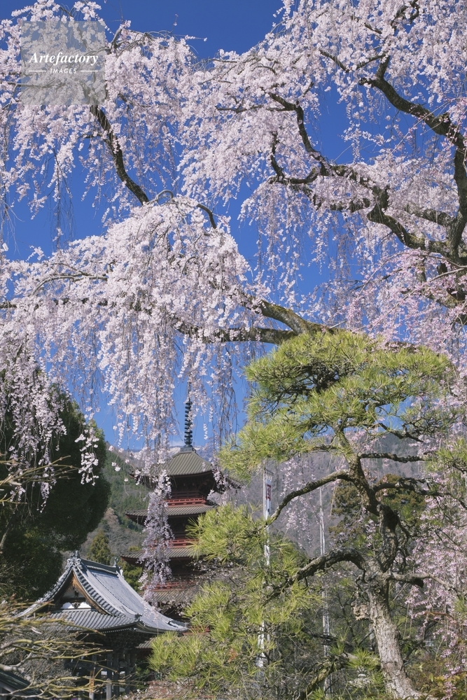 | 作品タイトル | シダレザクラ咲く身延山 久遠寺 五重塔 | モデルリリース | なし | |