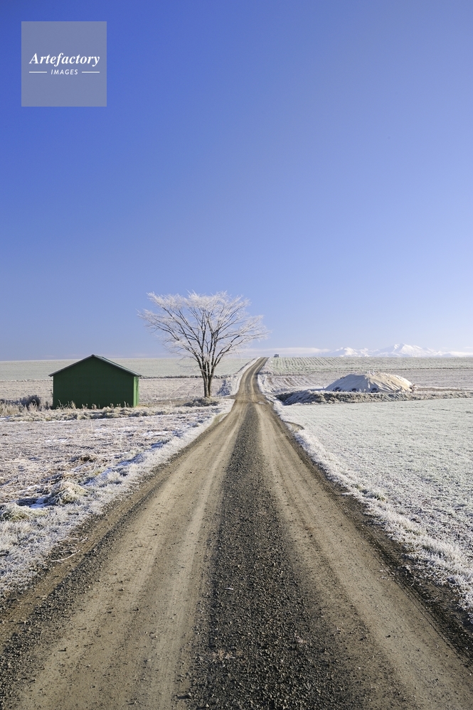 | 作品タイトル | 霜の降りた畑・農道と大雪山 | モデルリリース | なし | |