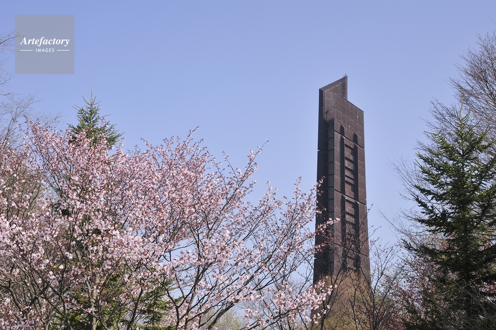 作品タイトル     野幌森林公園の桜と百年記念塔 モデルリリース なし