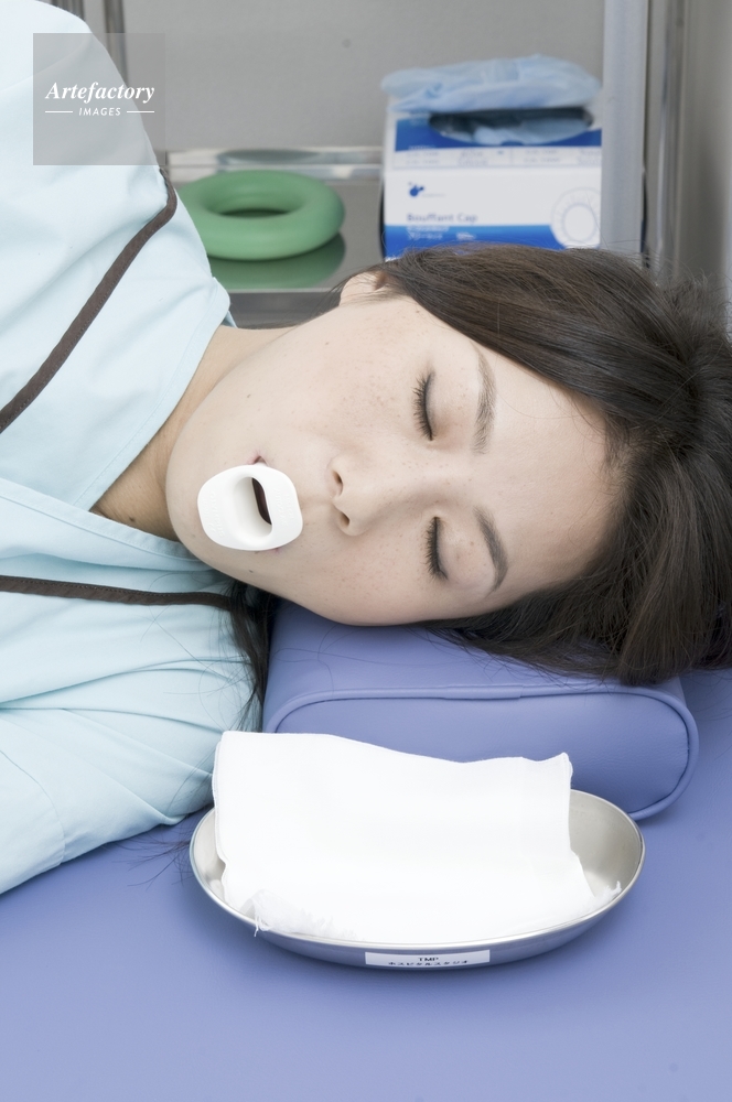 | キャプション | 上部内視鏡検査(経口内視鏡)の準備、マウスピースを咥える | 制限事項 | ||