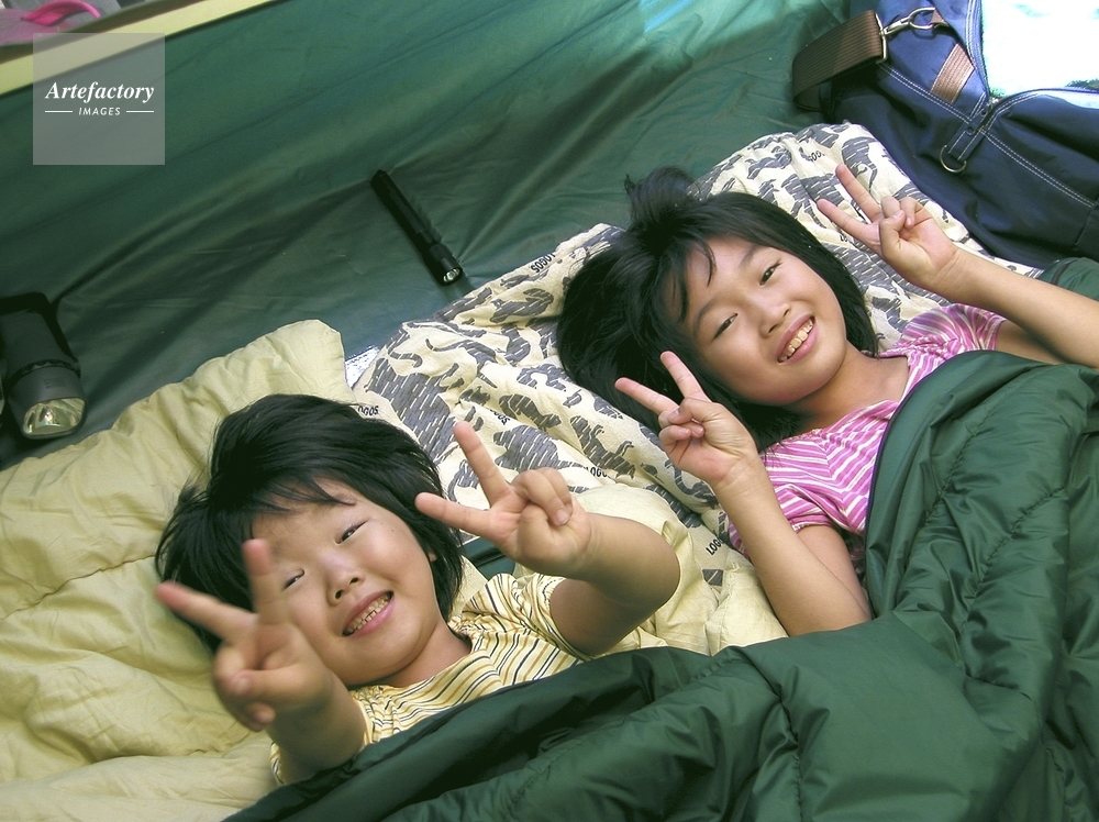 | 作品タイトル | キャンプで寝袋で寝る(5歳と8歳) | モデルリリース | あり | |
