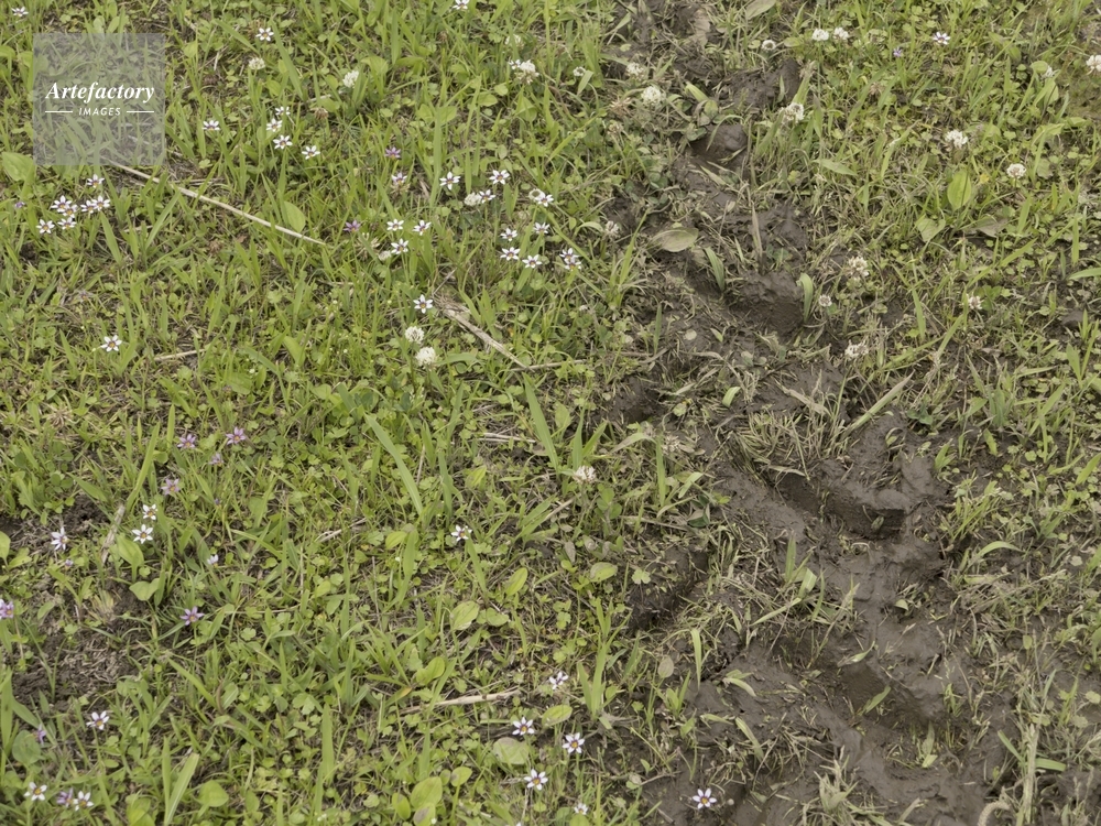 | 作品タイトル | 農機具のタイヤ痕と野草の花 | モデルリリース | なし | |