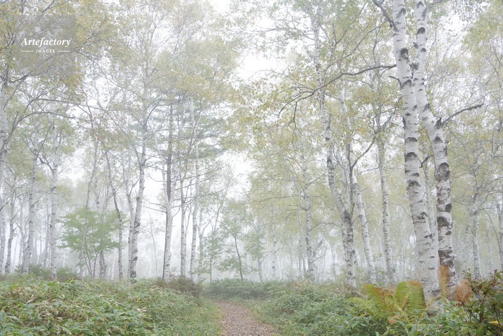 | 作品タイトル | 黄葉の霧の白樺の森へと続く道 | モデルリリース | なし | |