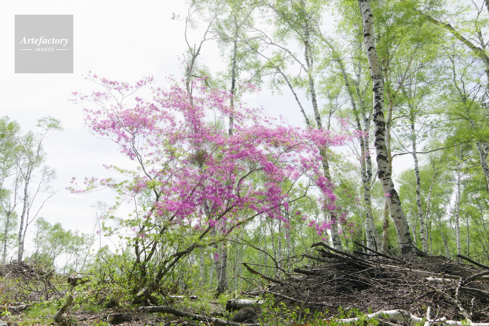 | 作品タイトル | 白樺の森で風に揺れるミツバツツジと枯れ木と | モデルリリース | なし | |