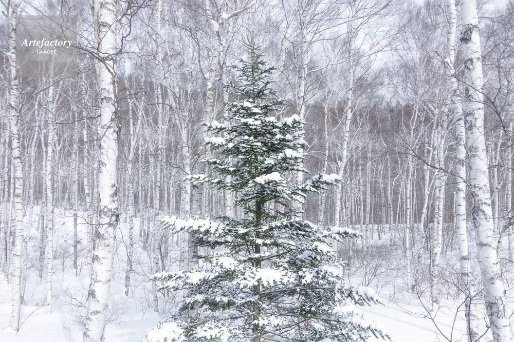 | 作品タイトル | 新雪の白樺の森の一本の針葉樹 | モデルリリース | なし | |