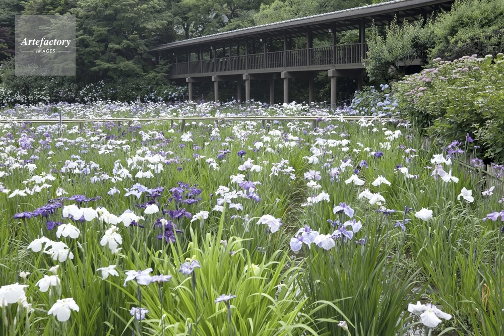 | 作品タイトル | 本土寺の回廊前に咲くハナショウブとアジサイ | モデルリリース | なし | |