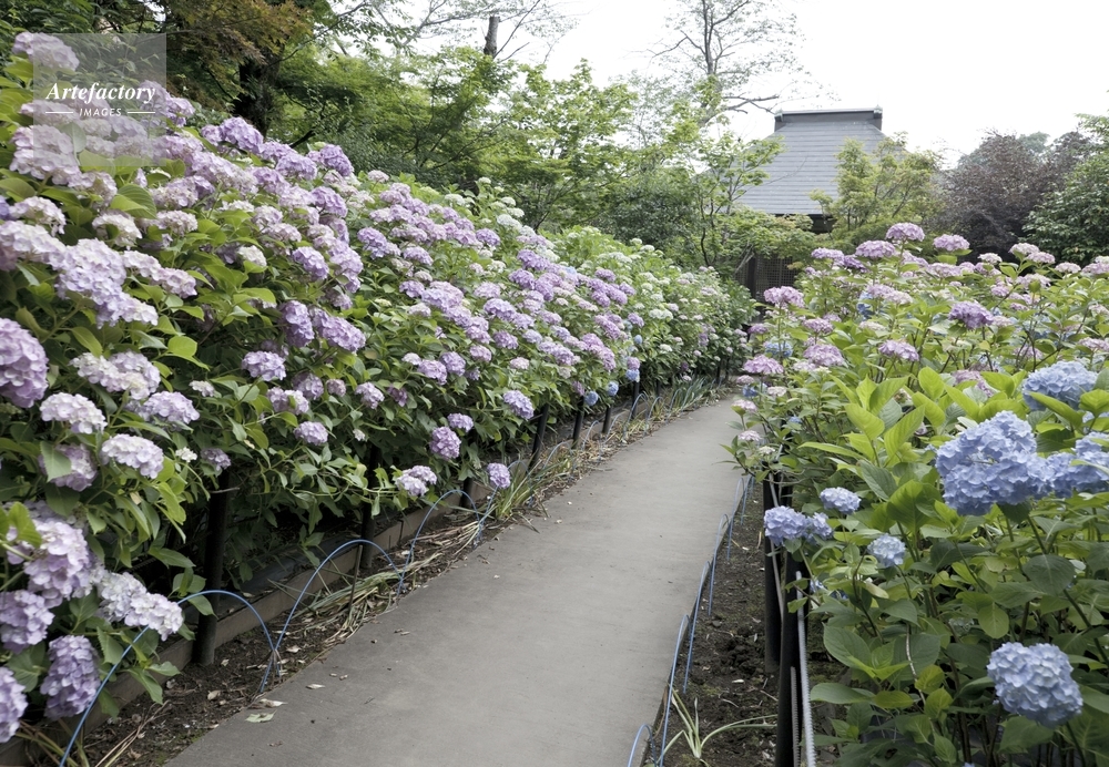 | 作品タイトル | 本土寺境内に咲くアジサイと開山堂 | モデルリリース | なし | |