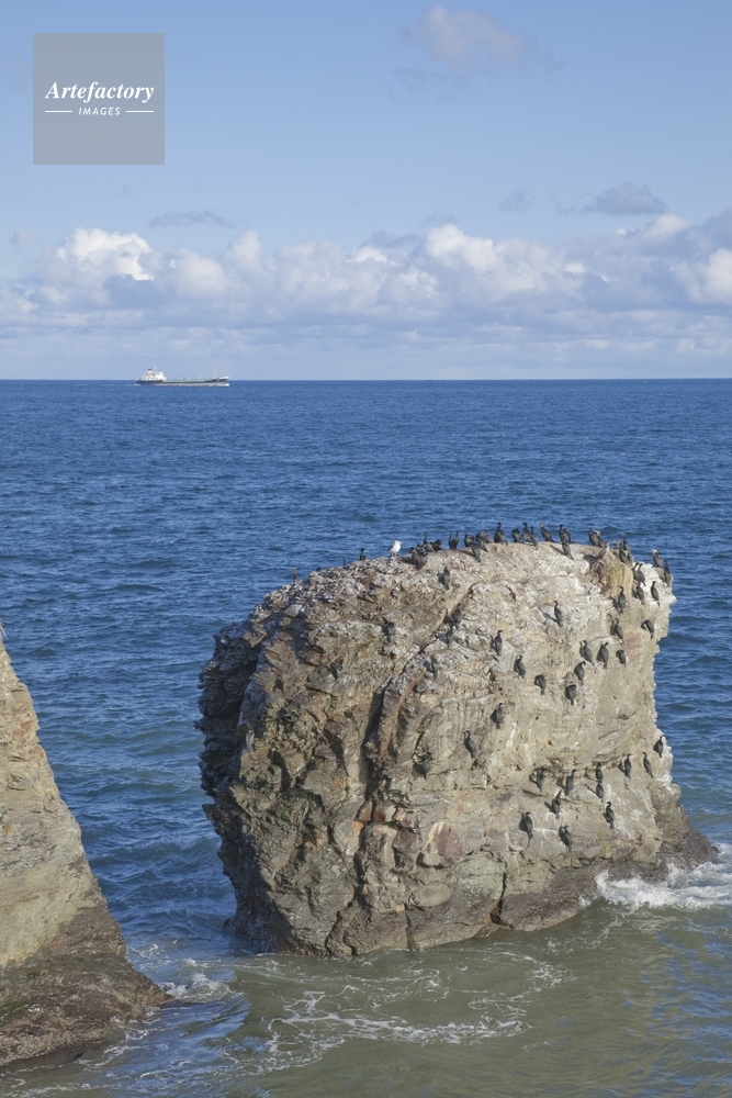 | 作品タイトル | 納沙布岬の岩場に集う鵜と貨物船 | モデルリリース | なし | |
