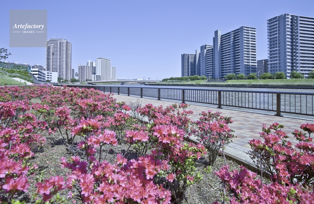 | 作品タイトル | 隅田川沿いに咲くツツジと高層住宅 | モデルリリース | なし | |