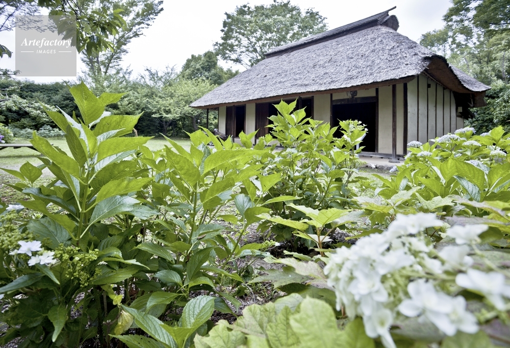 | 作品タイトル | 郷土の森博物館の旧越智家住宅に咲くアジサイ | モデルリリース | なし | |