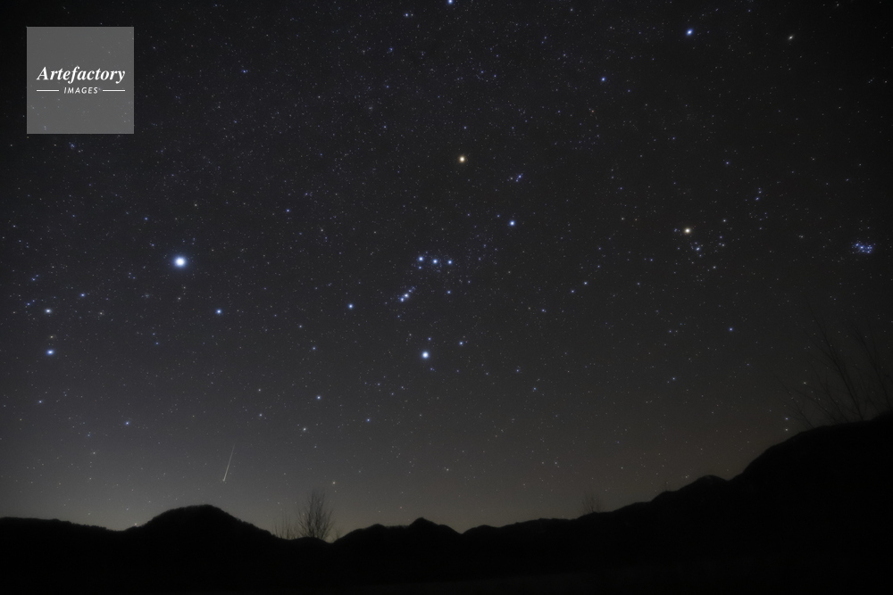 | 作品タイトル | 沈む冬の大三角とふたご座流星群 オリオン座 大犬座 小犬座 | モデルリリース | なし | |