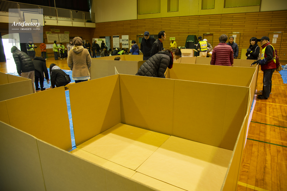 | 作品タイトル | 防災訓練の避難所の段ボール型仕切り | モデルリリース | なし | |