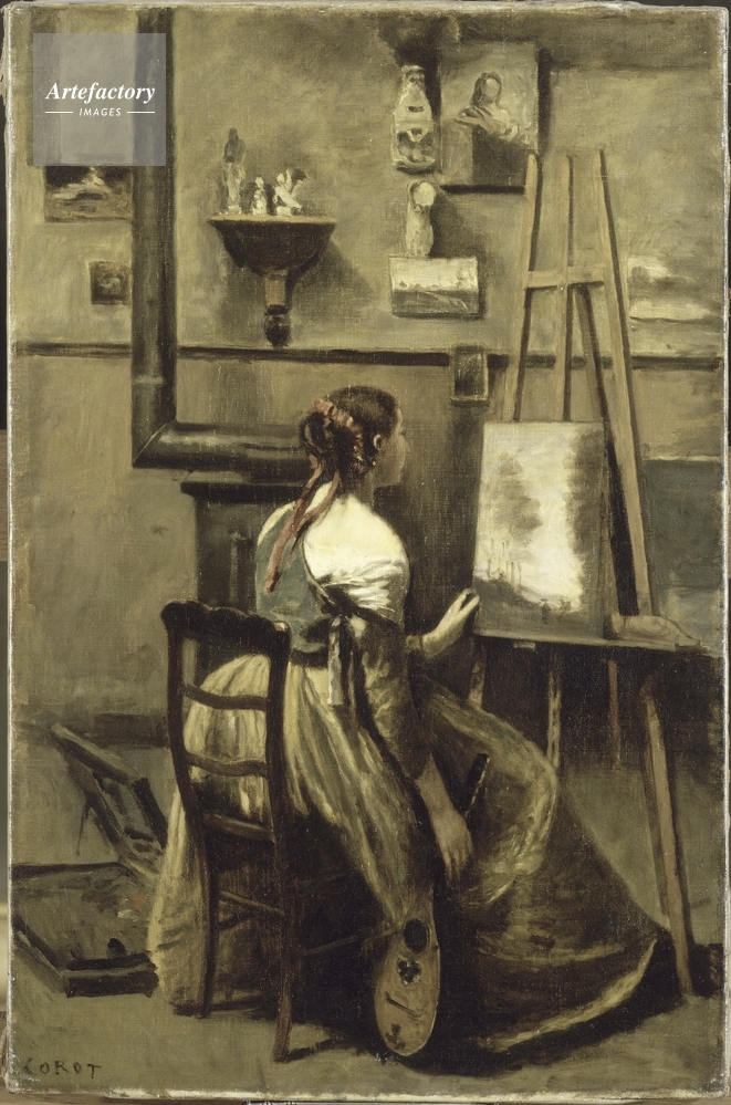 | 作品タイトル | L'Atelier de Corot, jeune femme assise devant un chevalet | モデルリリース | なし | |