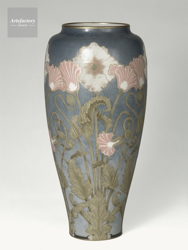 | 作品タイトル | Vase Creusot, fond bleu, decore de tiges fleuries vert, saumon et or | モデルリリース | なし | |