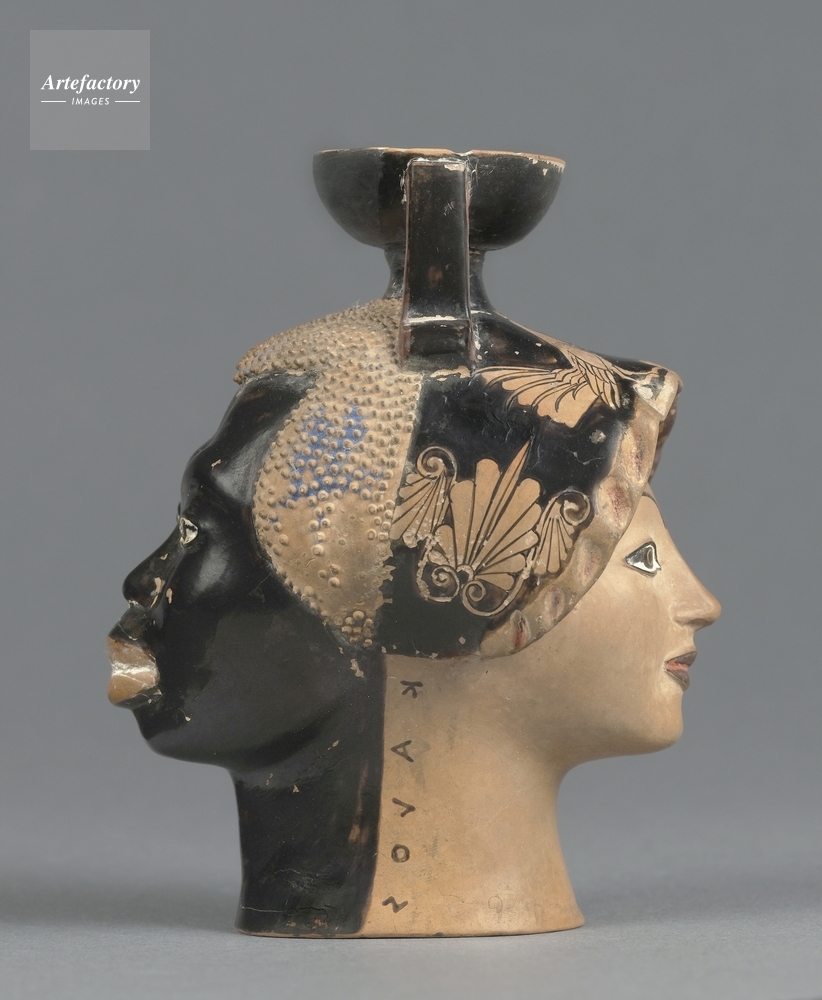 | 作品タイトル | Aryballe plastique en forme de tete feminine et de tete de noir | モデルリリース | なし | |