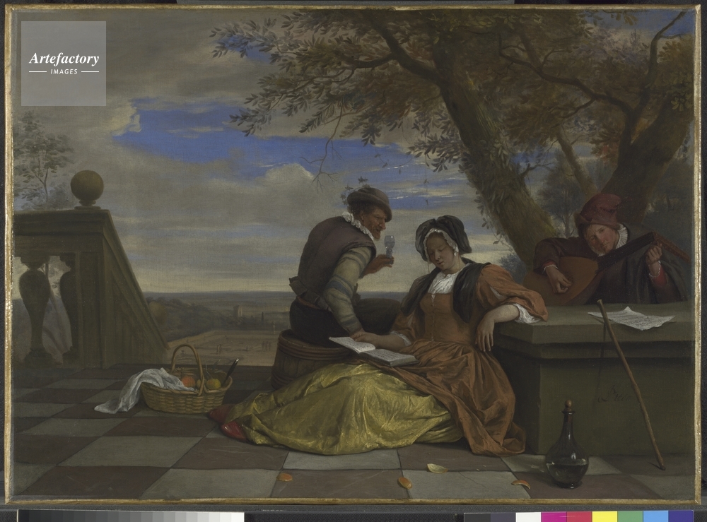 | 作品タイトル | Two Men and a Young Woman making Music on a Terrace | モデルリリース | なし | |
