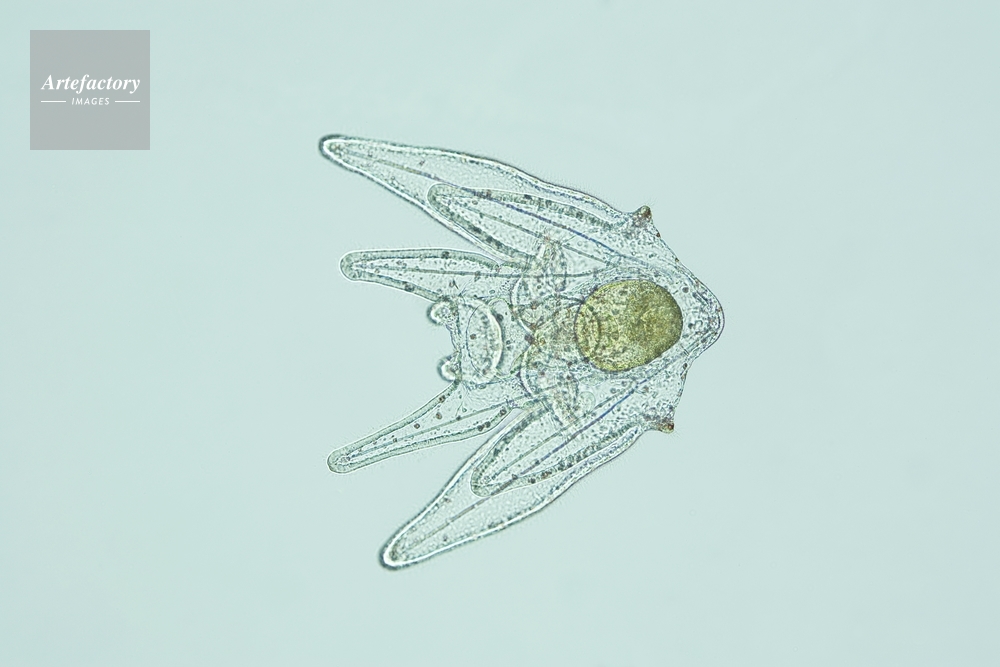 | キャプション | 6腕期プルテウス幼生(後期) 背面、長辺35mmの場合 25倍 | 制限事項 | ||
