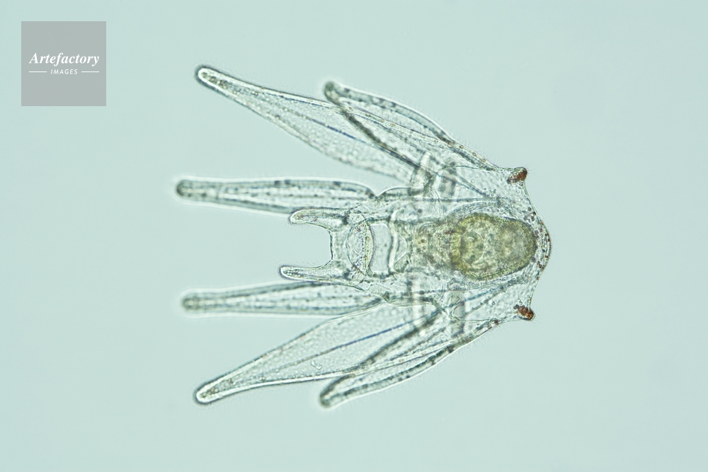 | キャプション | 8腕期プルテウス幼生(前期) 背面、長辺35mmの場合 25倍 | 制限事項 | ||