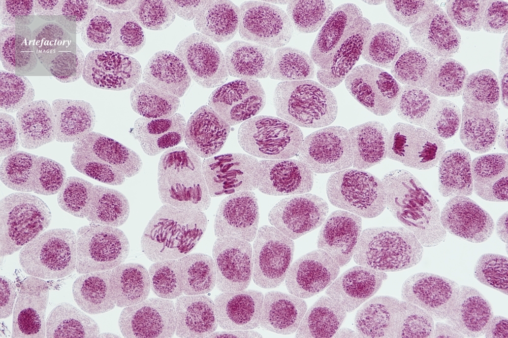 | キャプション | 体細胞分裂のいろいろな時期 酢酸オルセイン染色、長辺35mmの場合 100倍 | 制限事項 | ||
