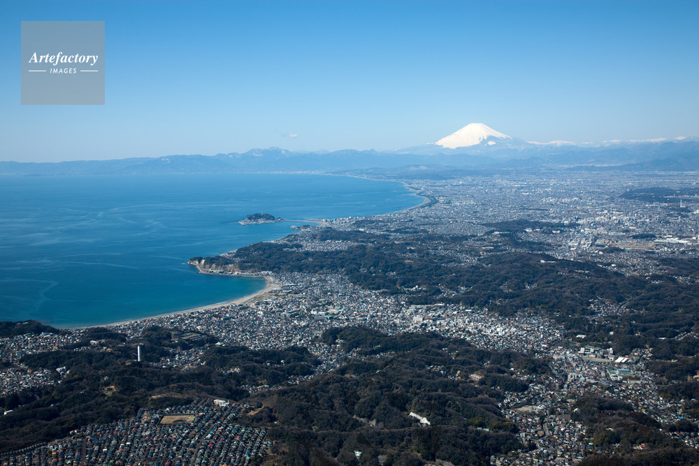 | 作品タイトル | 鎌倉市街地と由比ヶ浜、材木座海岸より江ノ島、富士山方面 | モデルリリース | なし | |