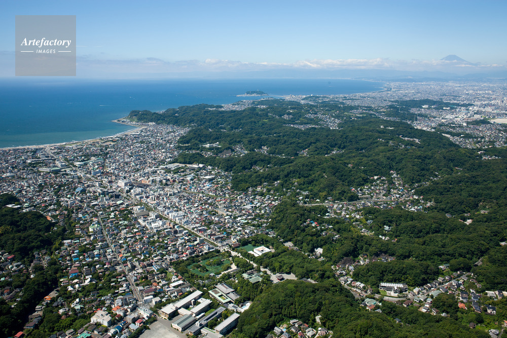 | 作品タイトル | 鶴岡八幡宮と鎌倉市街地より鎌倉海岸、江ノ島、湘南海岸、相模湾 | モデルリリース | なし | |