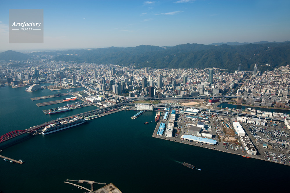 | 作品タイトル | 神戸港、新港東埠頭(小野浜町)、ポートターミナルより神戸市街地より六甲山 | モデルリリース | なし | |