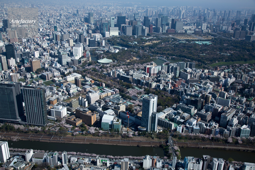 | 作品タイトル | 満開の桜の外堀と富士見周辺より靖国神社,北の丸公園方面 | モデルリリース | なし | |