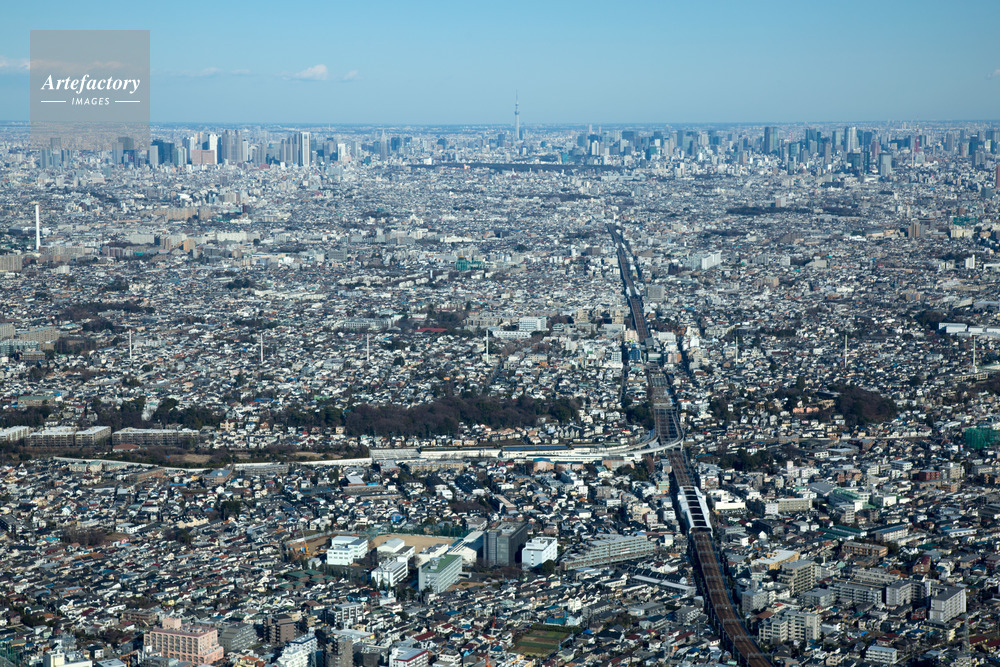 | 作品タイトル | 喜多見,成城学園駅(小田急線)周辺より都心方面 | モデルリリース | なし | |