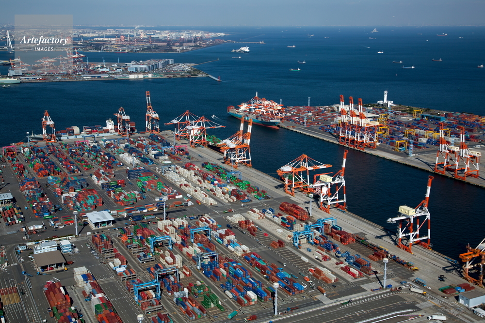 | 作品タイトル | 横浜本牧ふ頭のコンテナヤードと横浜港,東京湾 | モデルリリース | なし | |