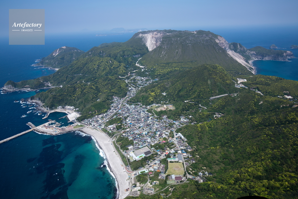 | 作品タイトル | 神津島、神津島村中心の街並み,神津島港より天井山(伊豆諸島)富士箱根伊豆国立公園 | モデルリリース | なし | |