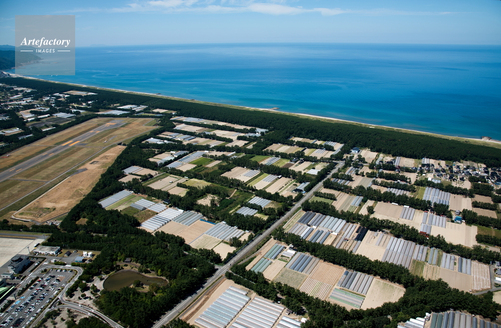 | 作品タイトル | 庄内の海岸,浜中地区(砂丘地帯)の果物,花畑のビニール栽培群とおいしい庄内空港 | モデルリリース | なし | |