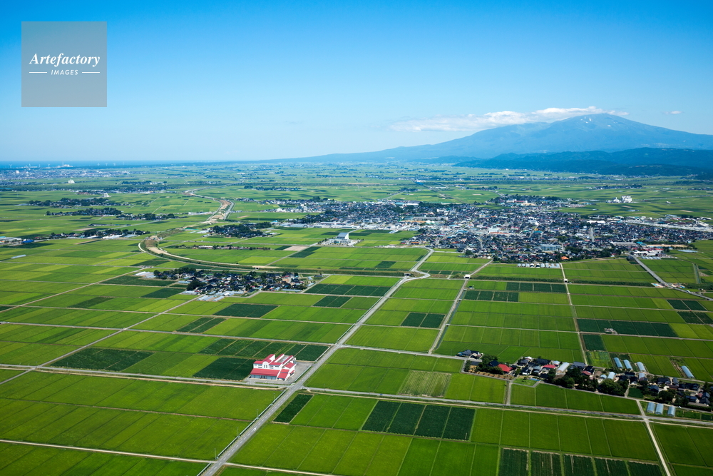 作品タイトル     庄内平野(庄内町茗荷瀬周辺)中央は庄内町より鳥海山 モデルリリース なし