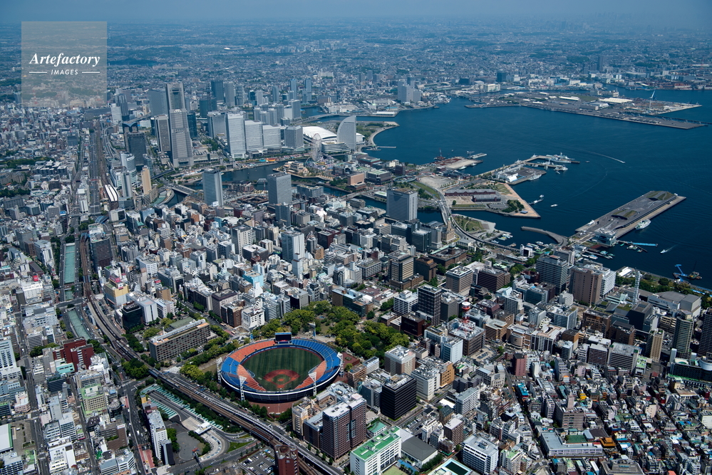 | 作品タイトル | 関内駅と横浜スタジアム周辺より横浜市街地と横浜港,みなとみらい地区方面 | モデルリリース | なし | |
