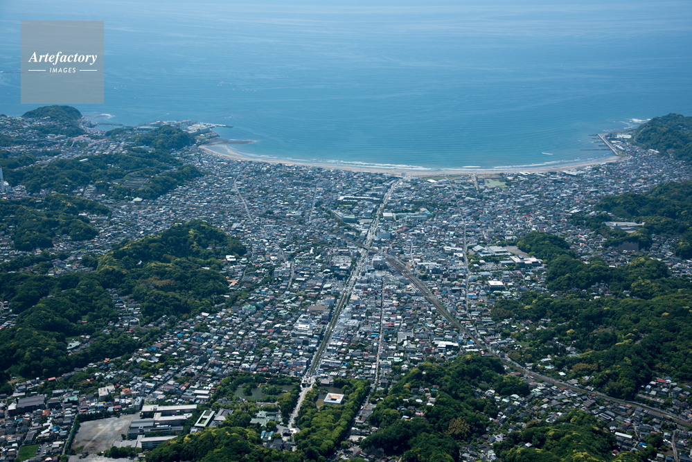 | 作品タイトル | 鎌倉市街地(鶴岡八幡宮)周辺より鎌倉の海岸と相模湾 | モデルリリース | なし | |