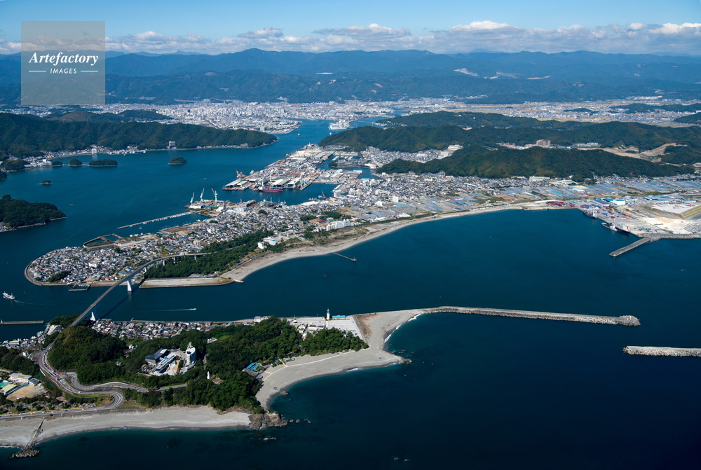 | 作品タイトル | 桂浜(日本の渚百選)竜頭岬周辺より浦戸湾と高知港と高知市街地 | モデルリリース | なし | |